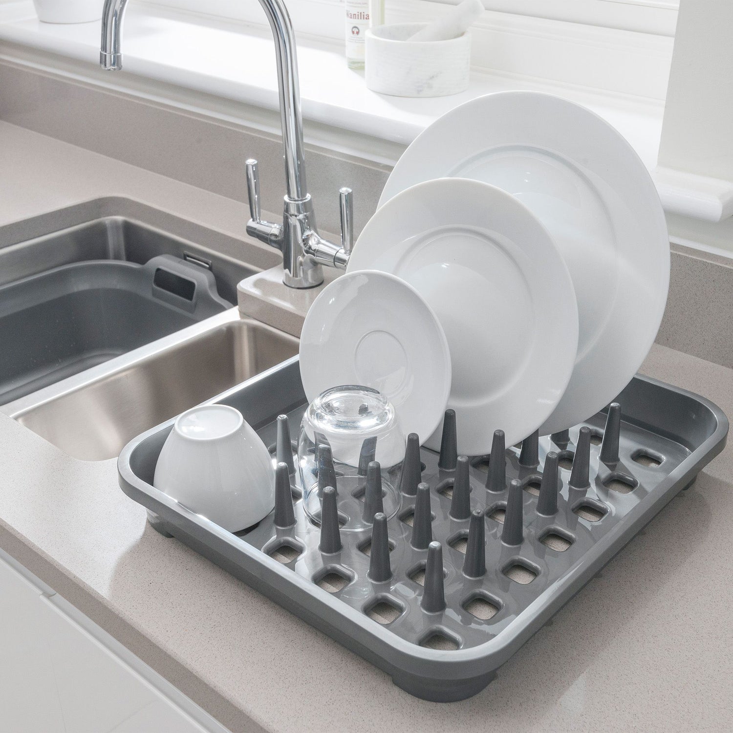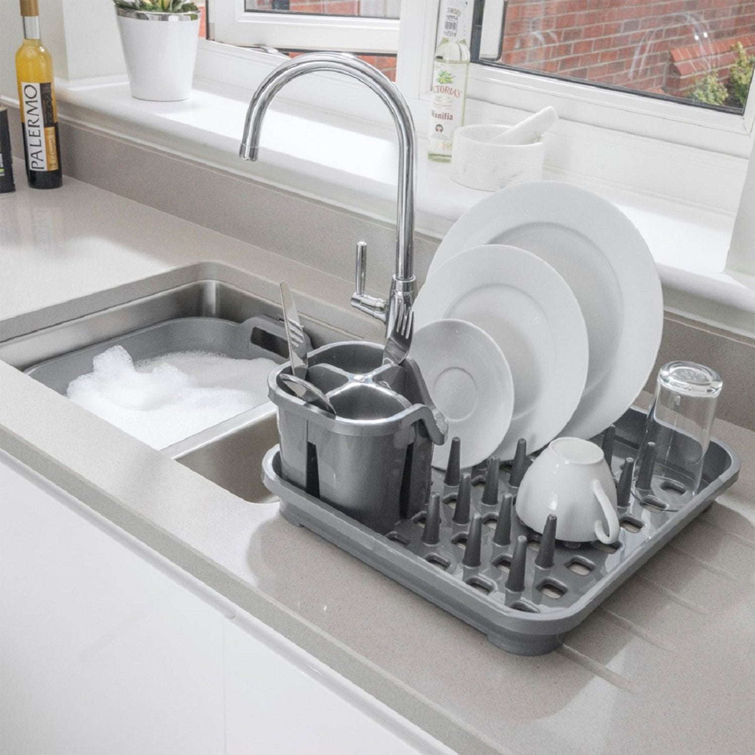 *bin, bowl, plate rack, and cutlery drainer are made in the UK
