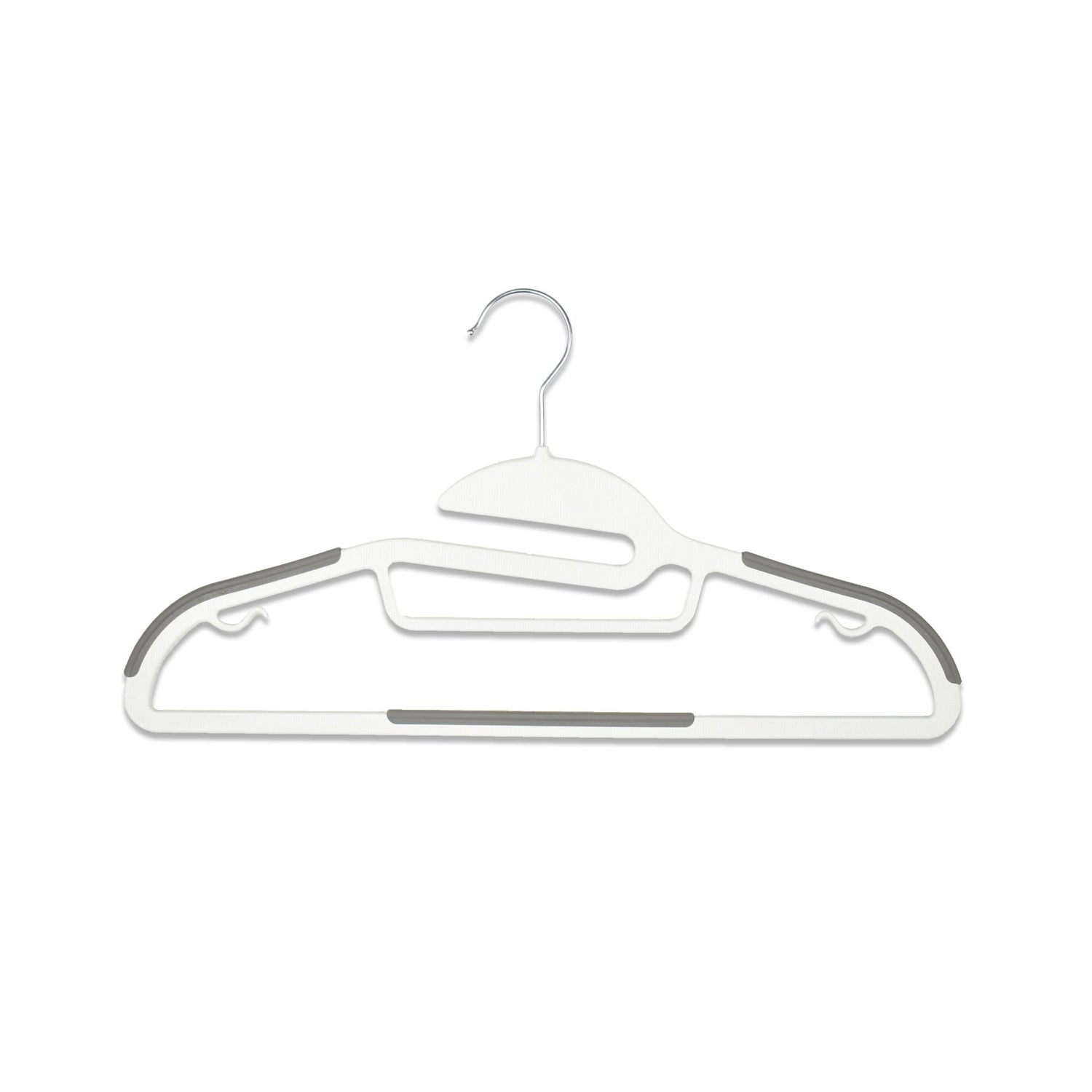 Non-slip, easy-to-use hangers include a convenient s-shaped collar, making the hangers ideal for narrow collared clothing to prevent stretching, and is also great for hanging scarves, belts, and ties.