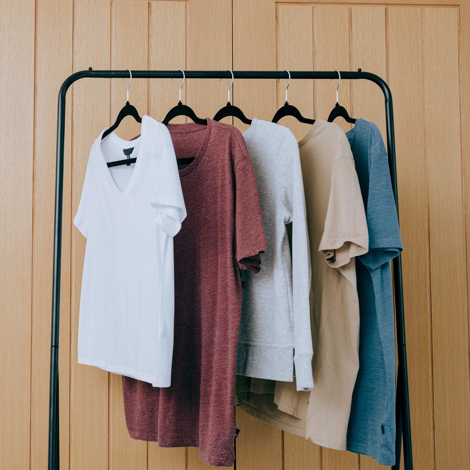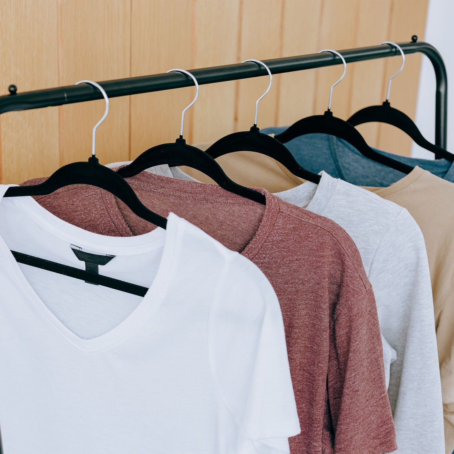 Ergo rounded grooves on the hanger arms to help hang dresses and skirts, with straps preventing wrinkling and the loss of shape.